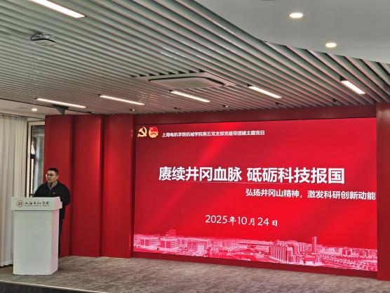 为深入学习贯彻习近平新时代中国特色社会主义思想,传承与弘扬井冈山精神,激发青年党员与团员的科研报国热情与创新活力,10月24日中午,上海电机学院机械学院第五党支部在行政楼230会议室举办“赓续井冈血脉,砥砺科技报国——弘扬井冈山精神,激发科研创新动能”党建带团建观摩活动。活动由第五党支部书记林建平主持,学院党委书记刘俊、副书记钟晓巍、组织员黄金,兄弟学院的教师代表以及第五党支部党员、入党积极分子和学生团员代表共同参与。