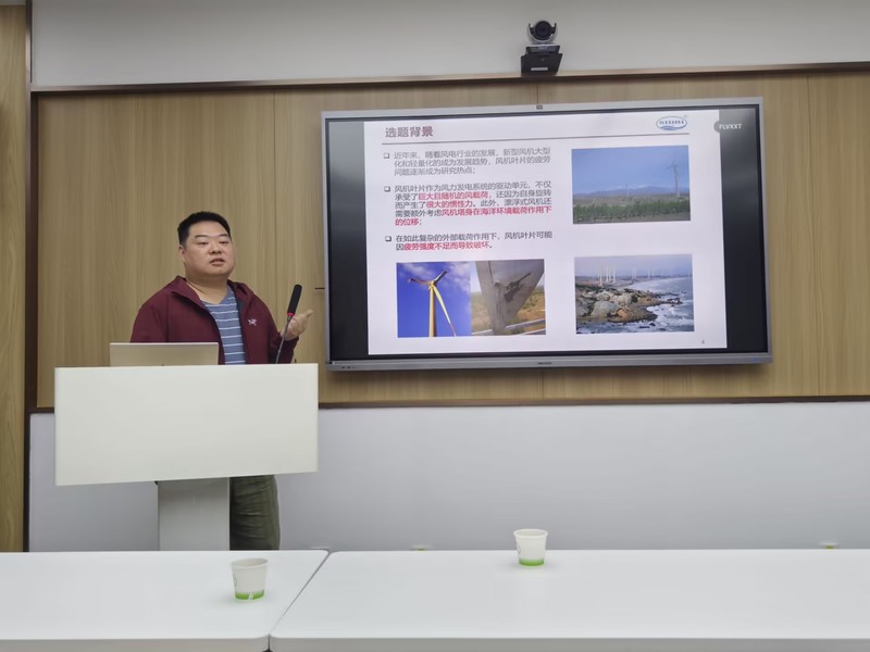 在报告过程中,戴博士结合研究背景与实际问题进行了细致讲解,帮助在场师生进一步理解复杂环境荷载作用下风机叶片疲劳行为的分析思路与研究方法。
