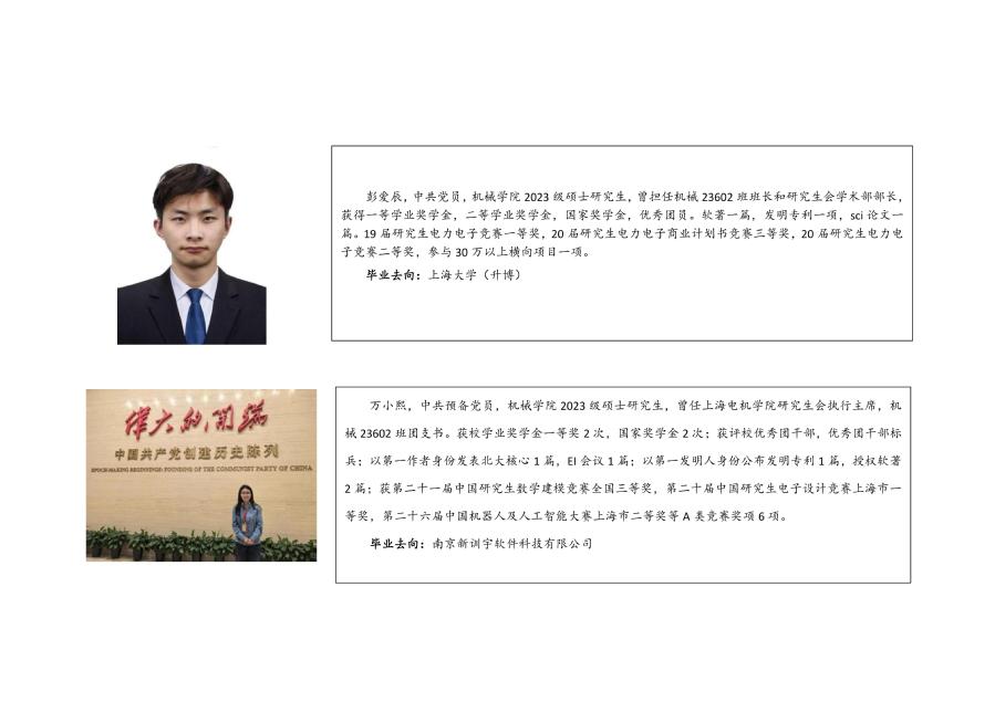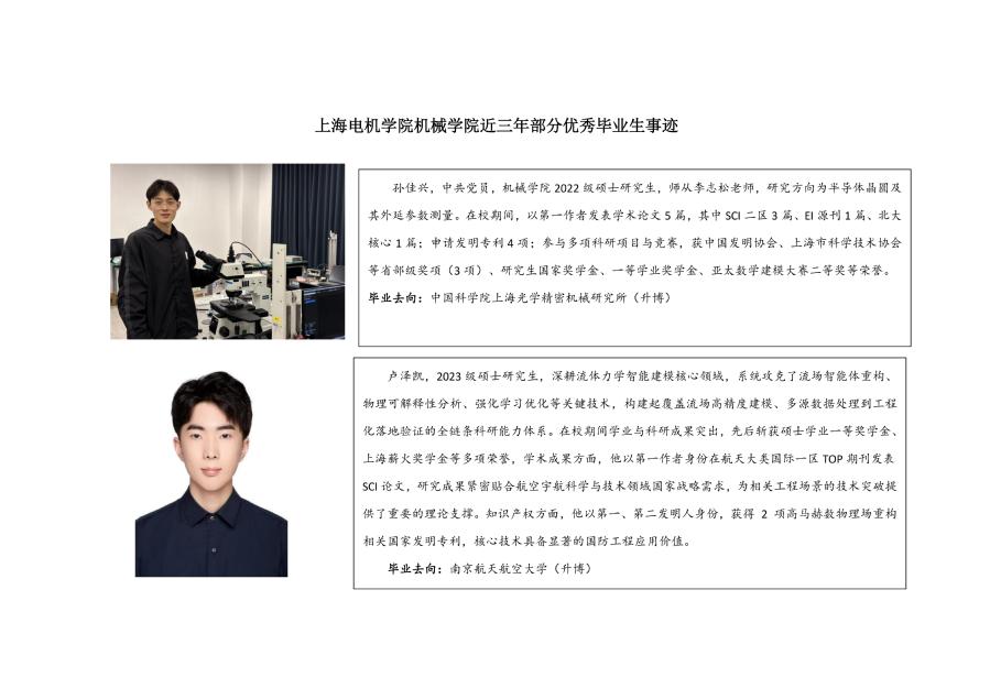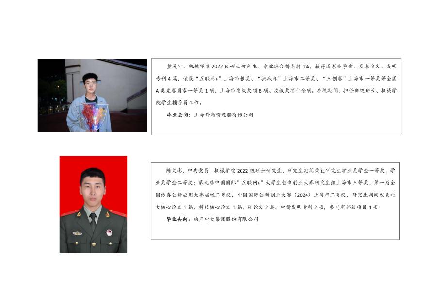上海电机学院机械学院近三年部分优秀毕业生事迹